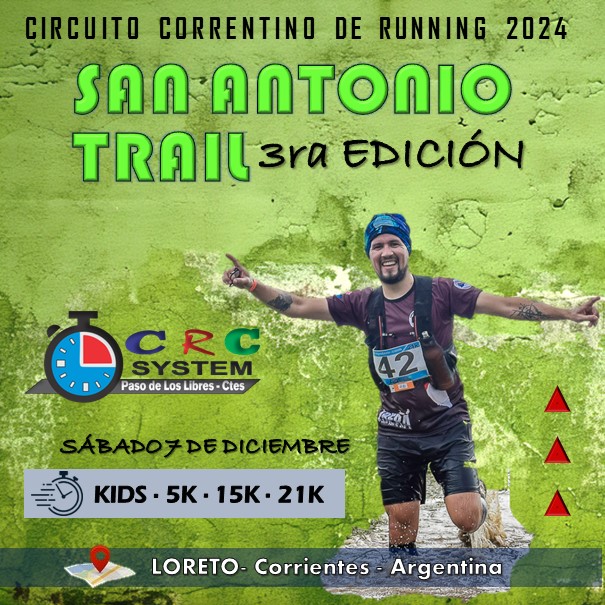 Transferencia 1° Enviar a MP CVU: 0000003100021983257852 - Alias: sanantoniotrail.mp 2° Enviar comprobante al 3764203163 con Nombre y DNI del corredor (Requisito obligatorio)