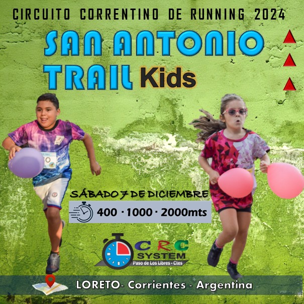 SAN ANTONIO KIDS (Carrera de niños)- SIN CARGO (No incluye remera) La remera para niños es opcional y tiene un costo de $10.000. Un responsable deberá contactar a la organización 3764203163