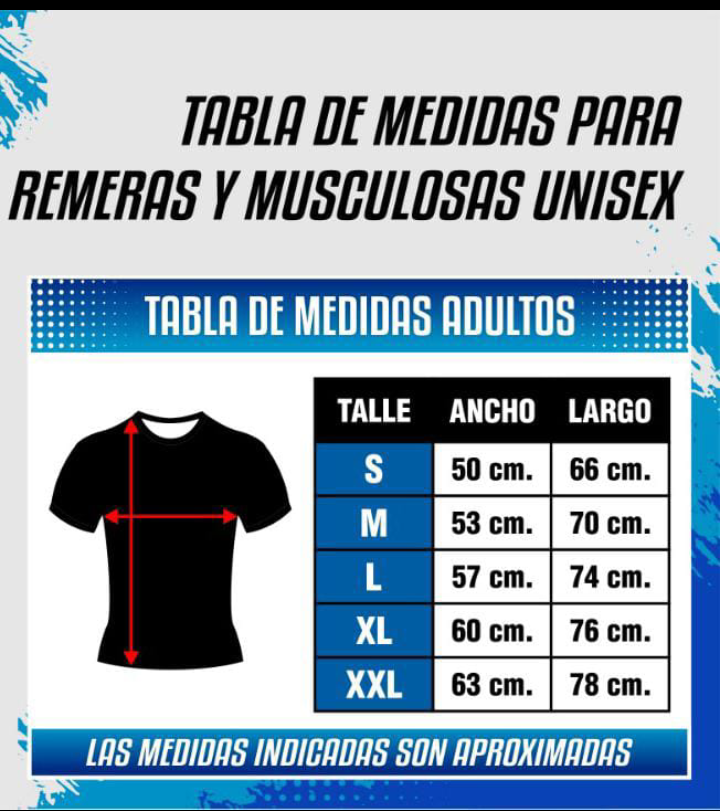 ACLARACION Una vez colocado el talle de la remera según la tabla de medidas . No sé realizarán cambios ,por cuestiones organizativas.