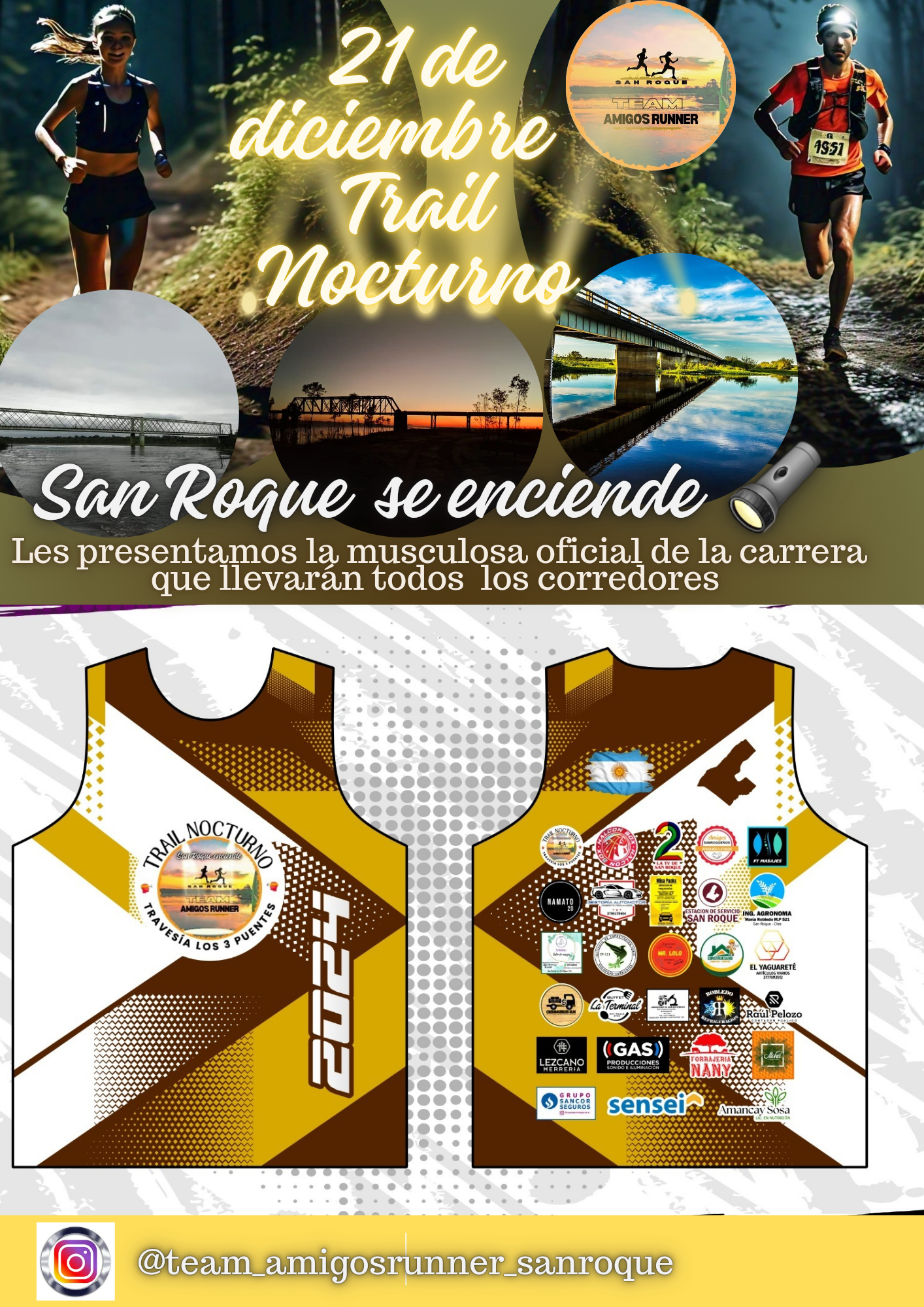 1º Trail nocturno, el circuito recorrerá los 3 puentes que son iconos de nuestra historia en los 252 años de nuestra querida Ciudad de San Roque. Las distancias serán de 7k y 12k competitivas.