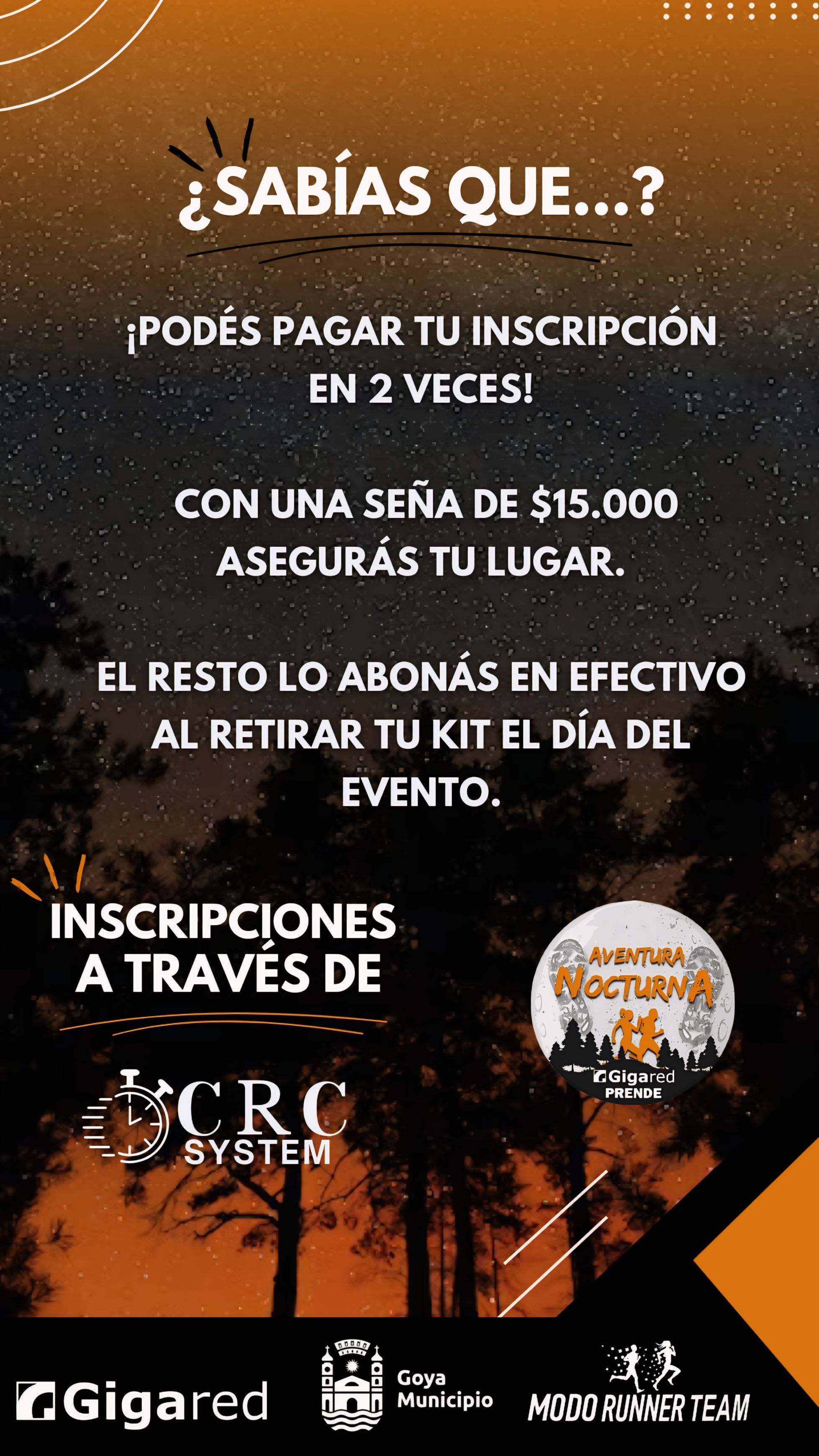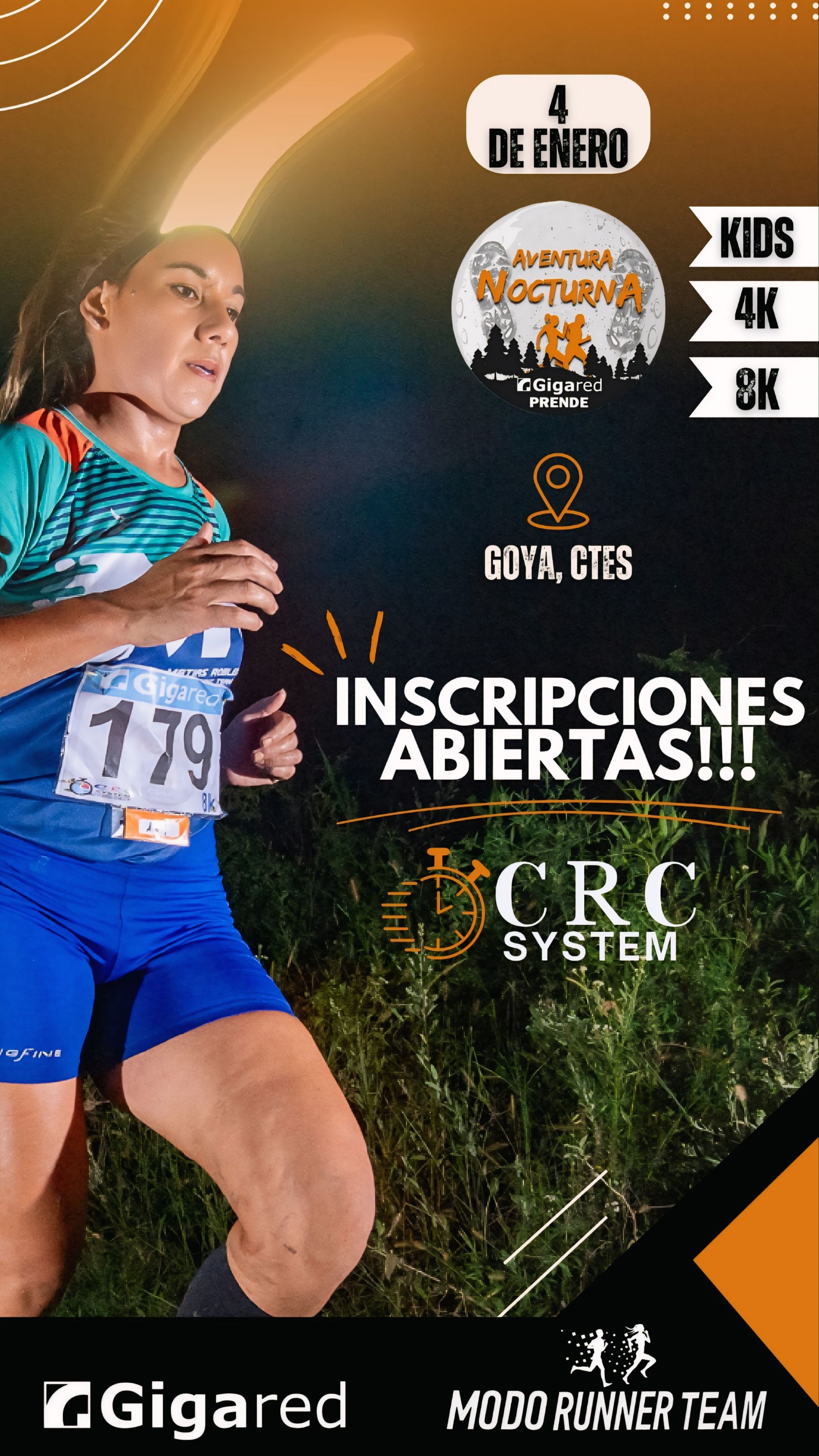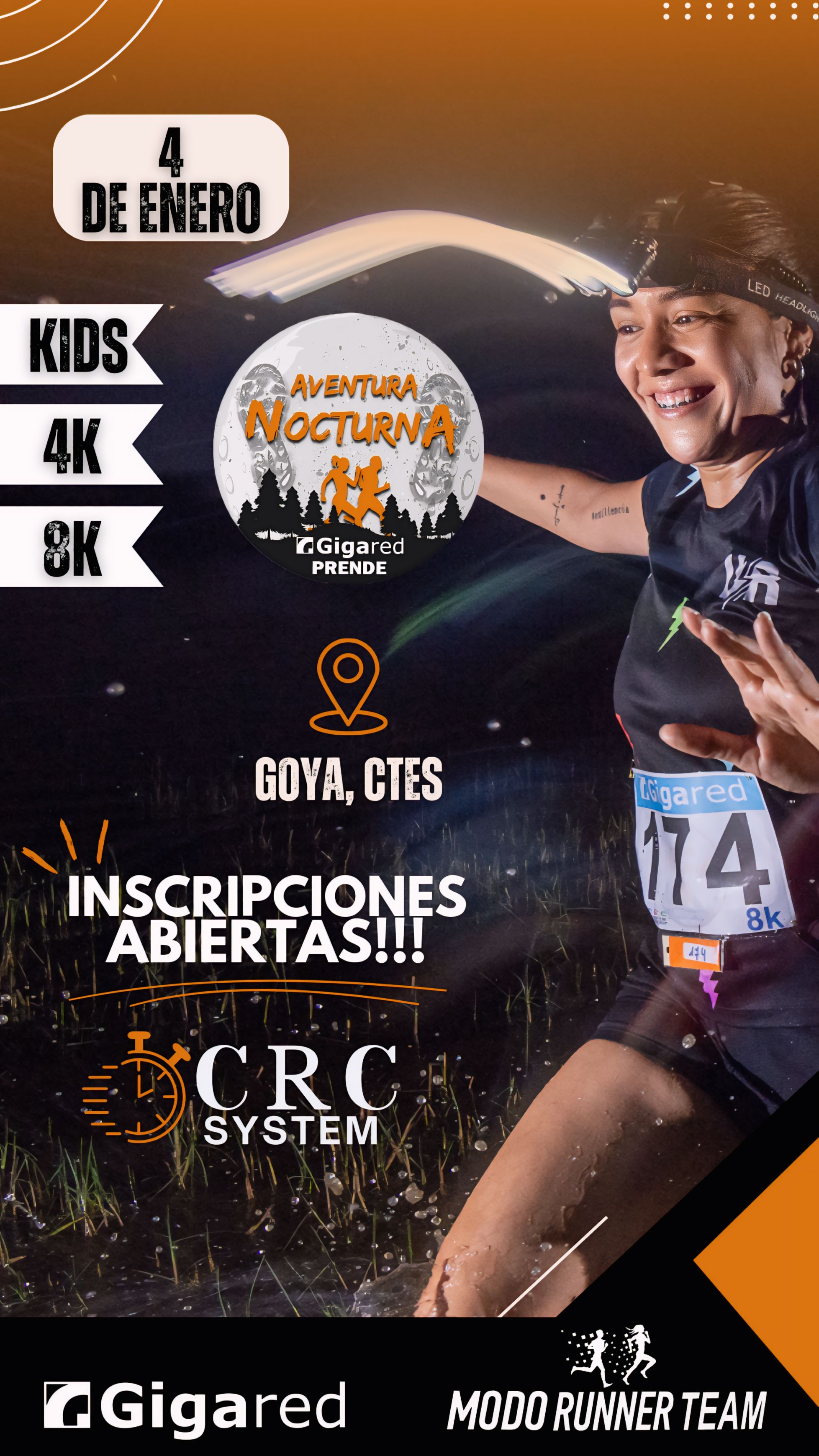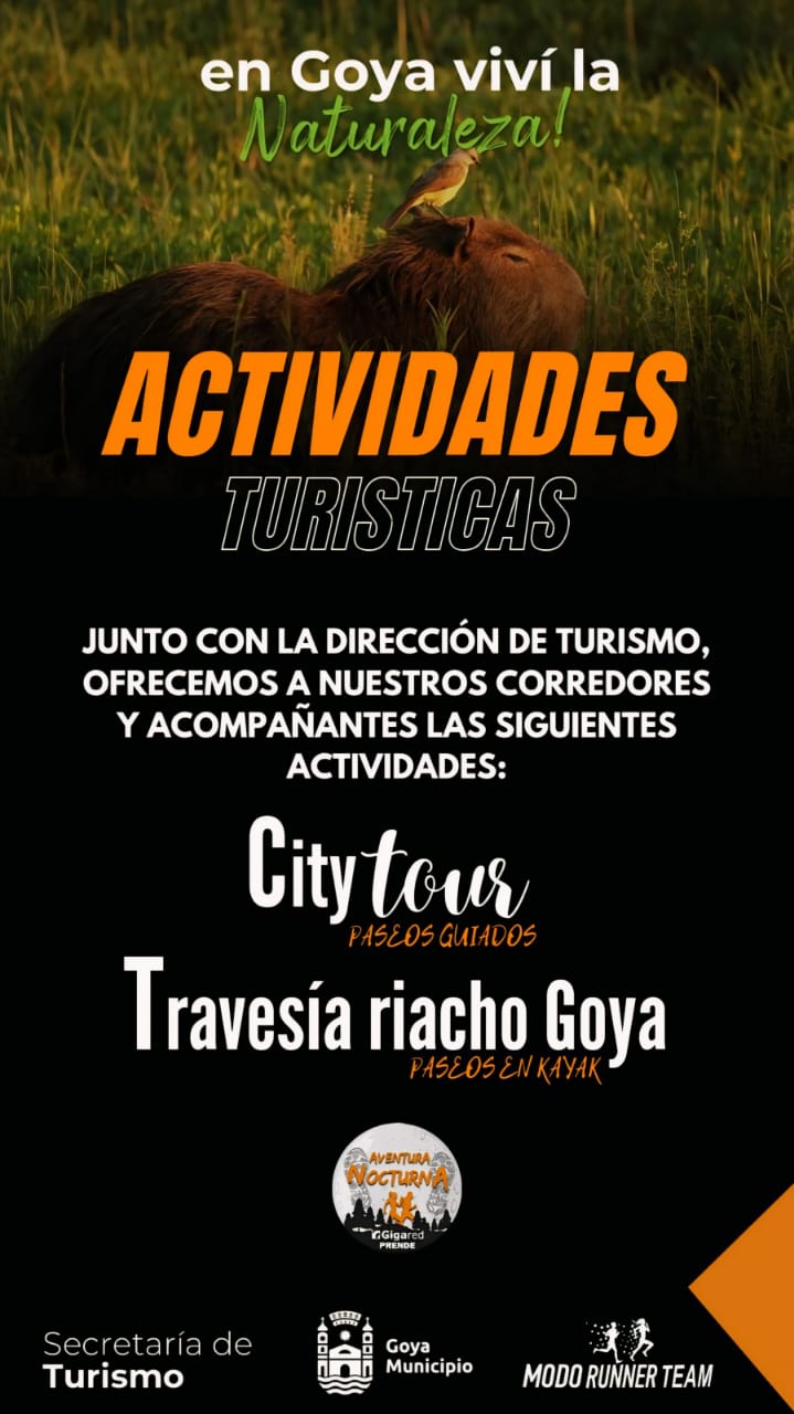La AVENTURA NOCTURNA 4ta Ed.2025, es una carrera hecha por corredores y para los corredores, organizada por el Grupo “Modo Runner Team”, con auspicio del Municipio de Goya, a través de la Dirección de Deportes. Contamos con el apoyo de diferentes áreas municipales, y el patrocinio de empresas locales.