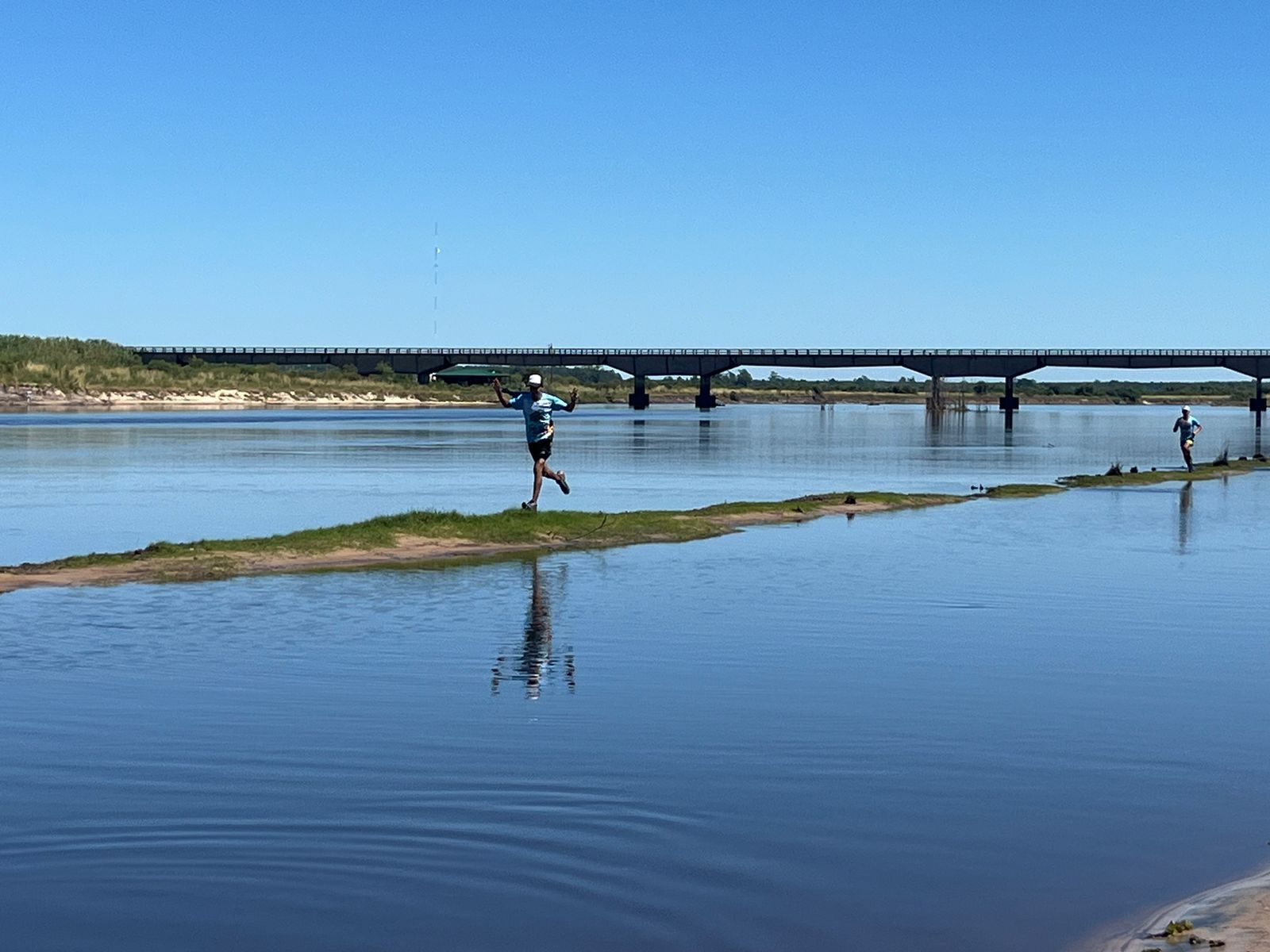 Se correra por zonas de humedales y arenales por la costa del Rio Superficie de campo con subidas y bajadas. Mucho pajonal y agua. Sugerimos medias largas. 6k el agua llega a la cintura en un paso del rio. Habra muchas custodias en lancha.